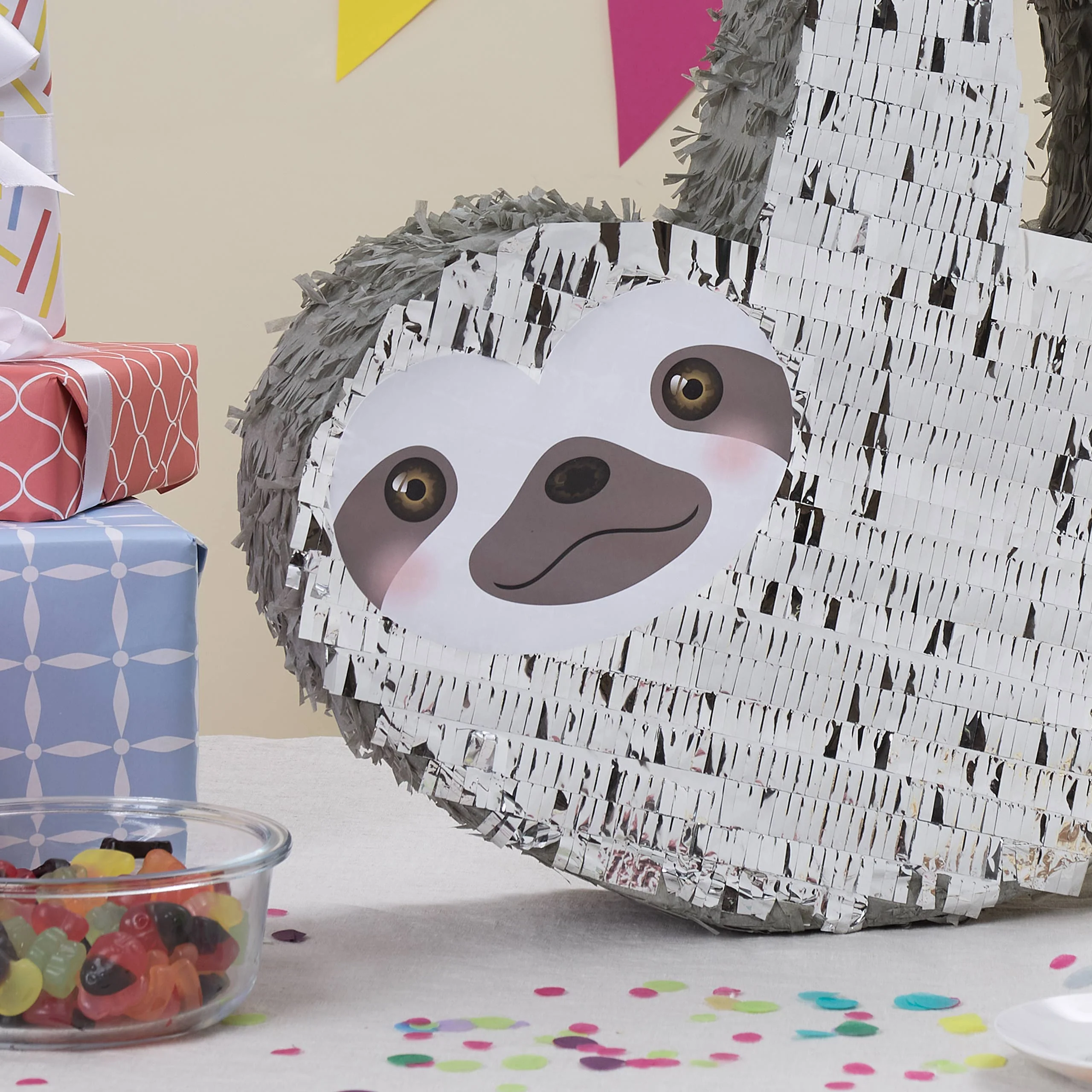 Pinata Set zum Befüllen inkl. Schläger & Augenbinde "Faultier"
