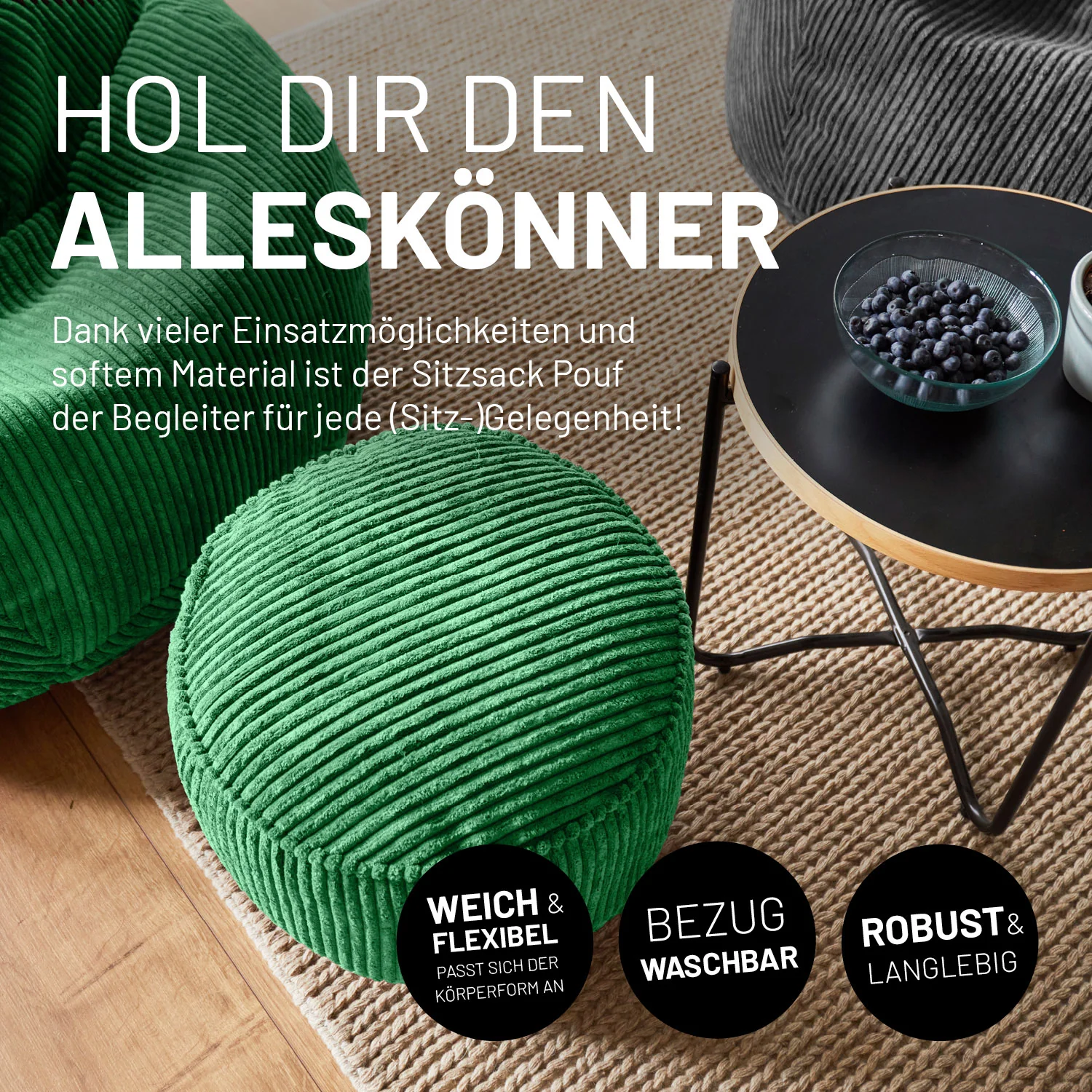 Sitzsack Pouf aus der Cord-Reihe - Dunkelgrün